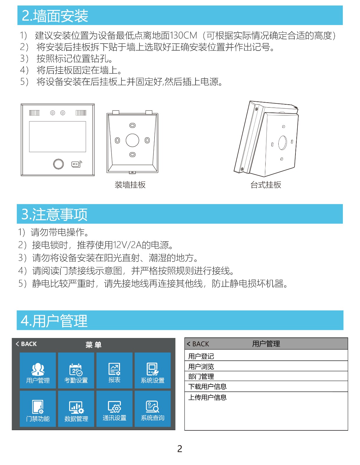 WA11F 动态人脸+指纹识别门禁考勤终端(ABS塑胶)